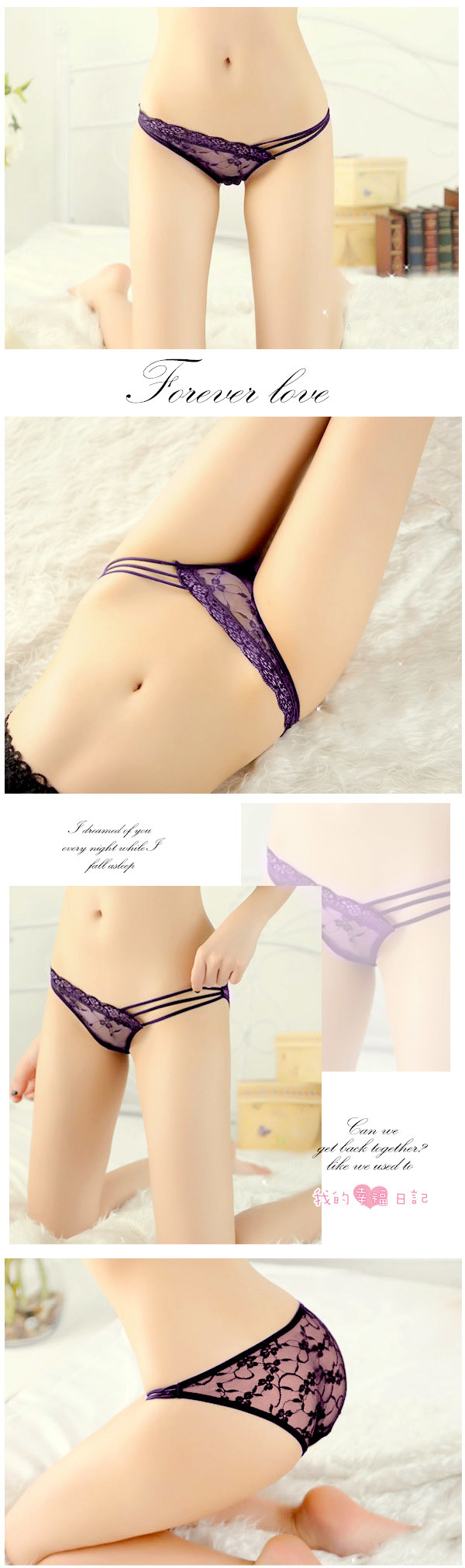 ◇◆迷唇印記.性感薄紗透視雕花蕾絲內褲(紫色)◆◇