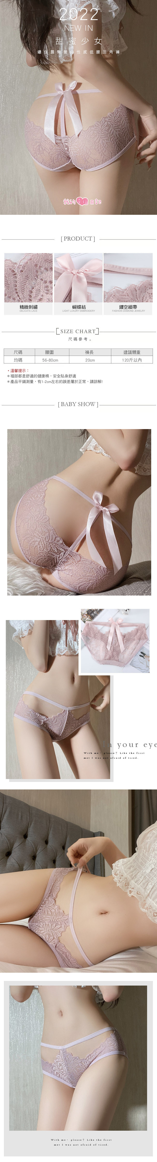 ◇◆甜蜜少女.蝴蝶結蕾絲鏤空露臀低腰內褲(豆沙色)◆◇