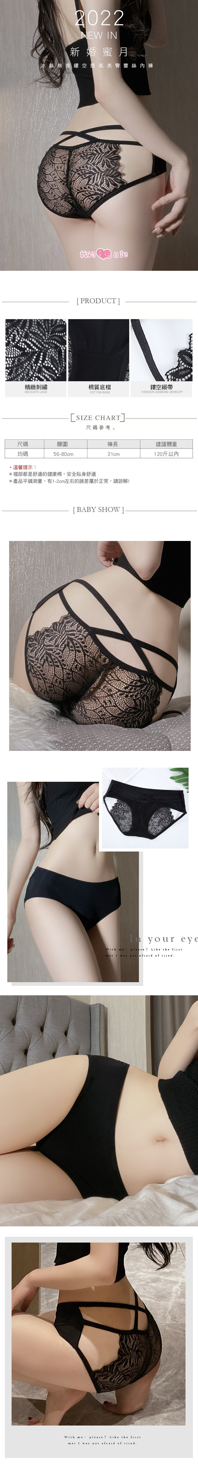 臀後鏤空交叉線條設計搭配底部花紋蕾絲低調湛放~