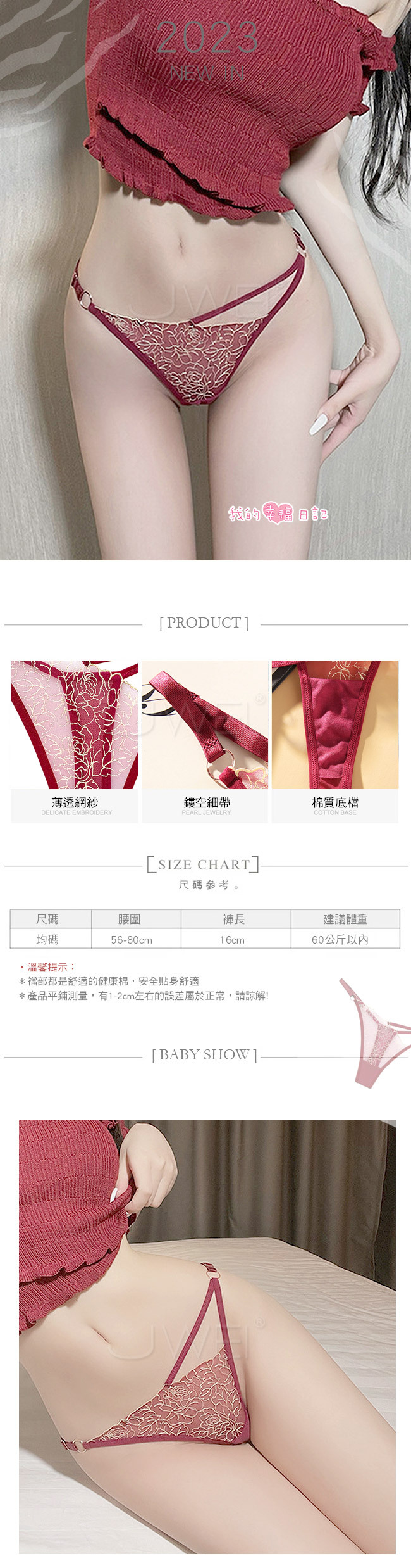 ◇◆香肌玉膚.花漾v型鏤空顯腰可調節誘惑丁字褲-酒紅色◆◇