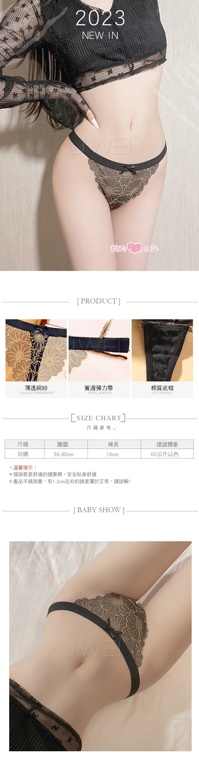 ◇◆網紅款-柔情媚態.雛菊元素低腰無痕誘惑丁字褲-黑色◆◇