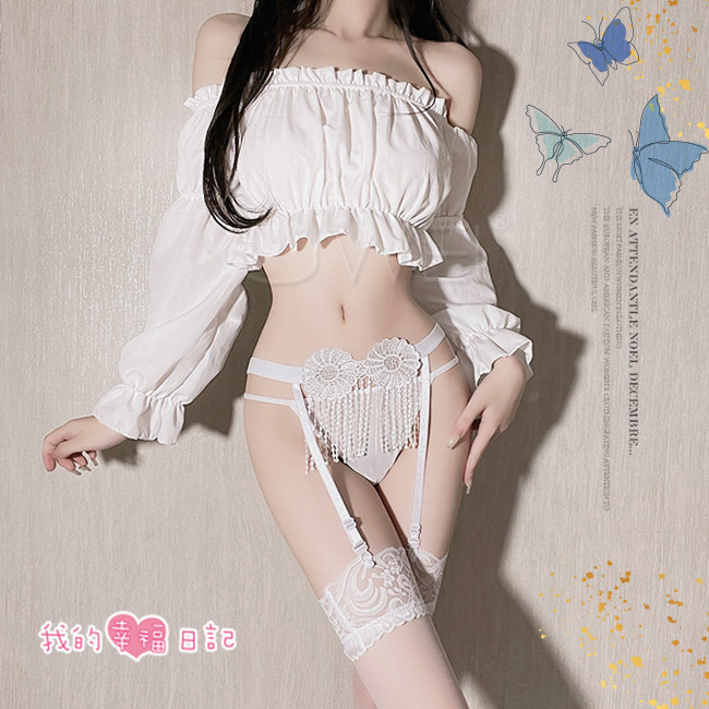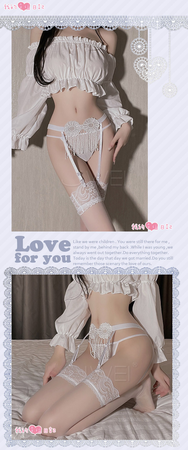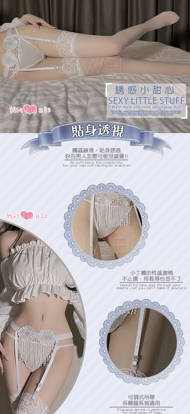 ◇◆春色撩人.鏤空透視調情流蘇吊帶襪+大腿蕾絲絲襪(白)◆◇
