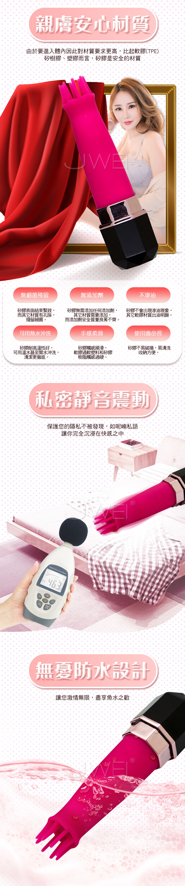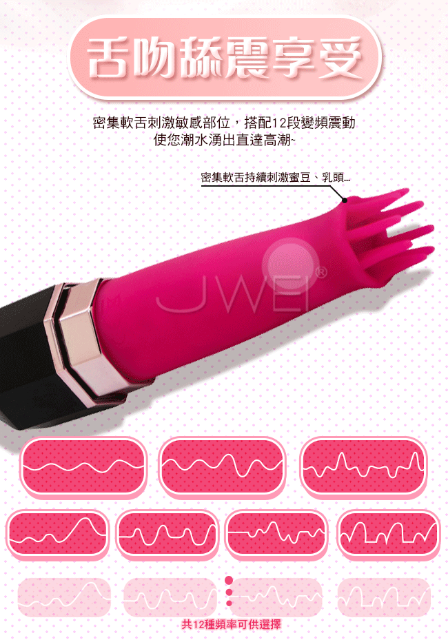 此款由於要進入體內因此對材質要求更高,比起矽樹膠、塑膠而言,矽膠是安全的材質,讓您更安心使用。且靜謐防水設計,保護您的隱私不被發現,如呢喃私語讓你完全沉浸在快感之中,不受場地所束縛。此款密集軟舌刺激敏感部位蜜豆、乳頭等...搭配12段變頻震動使您潮水湧出直達高潮~