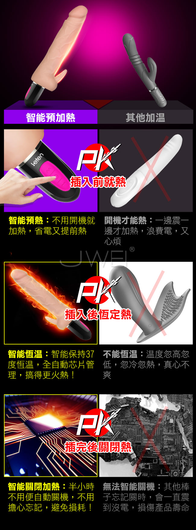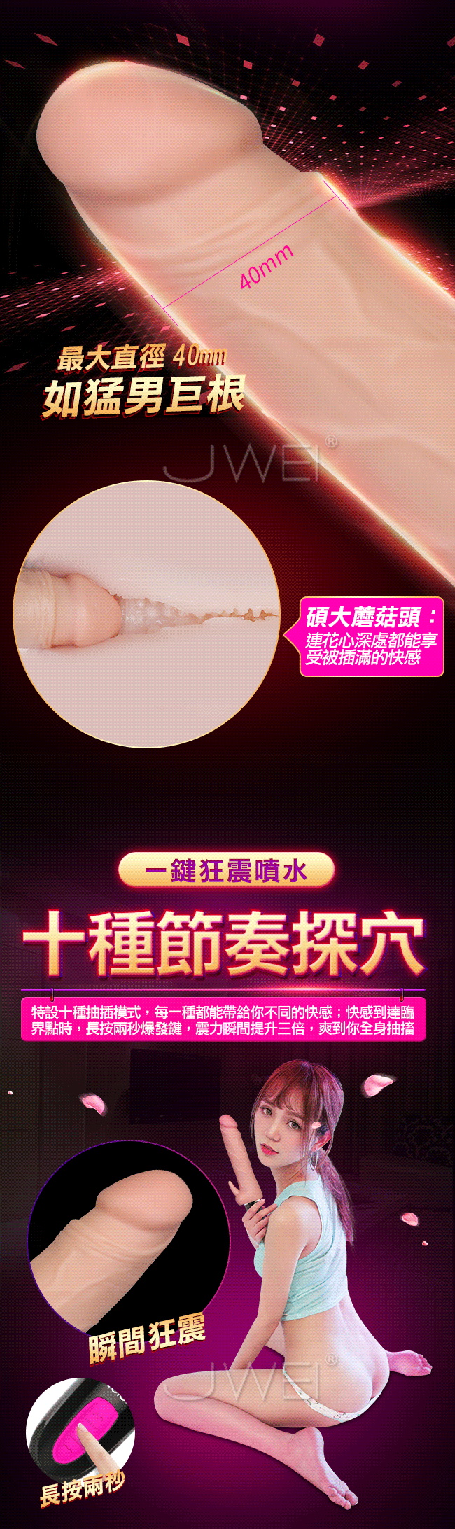 超狂肉搏戰士,無縫貼合蜜穴爽爆整條陰道!還在用硬梆梆的直棒嗎?此款龍骨可彎曲變形達到貼合陰到曲線,任意變換角度燃盡所有敏感神經。雙層細膩軟膠讓插入時如同跟男友啪啪一樣真實且舒適~提前預熱智能加溫可讓您盡情釋放您的欲火,情趣尖角撩蒂又撩菊層層酥爽小穴~仿真的包皮紋路,搭配碩大的龜頭如男友般給您快樂高潮。10種節奏探穴,每一種模式帶給您不同的快感!再即將高潮時可按爆發鍵,震力瞬間提升3倍,爽到讓您不要不要的~採用一體設計真正防水不僅清潔方便,使用更安心也可盡情享受啪啪啪的快感。USB磁吸充電設計,隨時充電隨時爽喔~