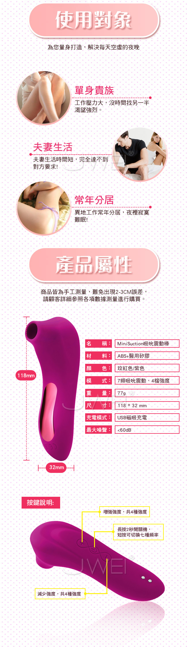 ■功能:7段變頻震動、4檔速度變化、吸吮功能