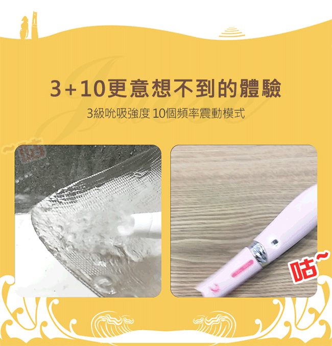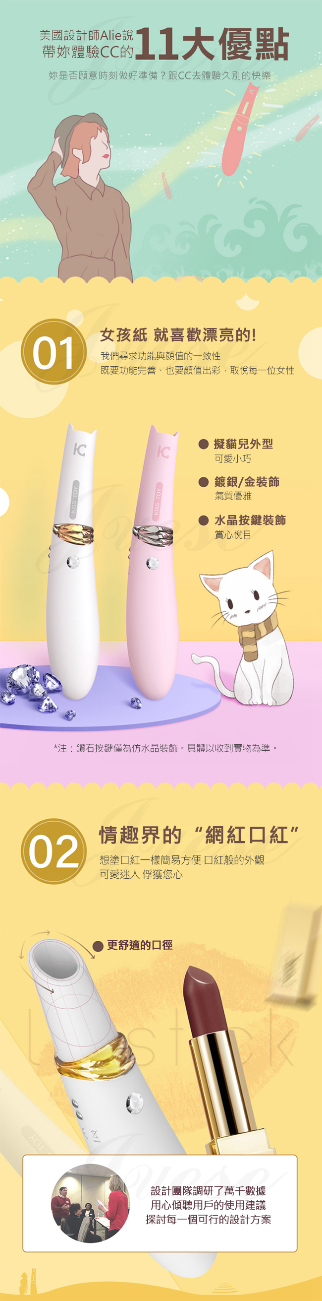 MISS CC 貓咪3檔吮吸+10段變頻矽膠震動棒-粉