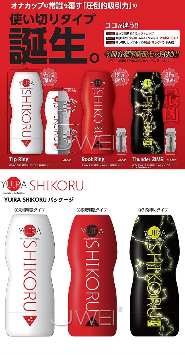YUIRA-SHIKORU-はココが違う!!Point1握って調整出来るソフトカップ!Point2直接刺激の突起(Direct Touch)を 2箇所に追加!Point3使い切りカップ史上発の締付リングバンド内蔵!【圧倒的吸引力!!】【使いきりカップ史上最大級の重さ!!】Direct Touch(直接刺激の突起)は2ヶ所に!!使い捨てカップ史上初の締め付けリング内蔵!!