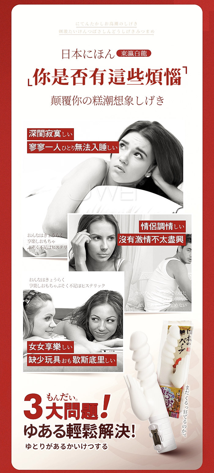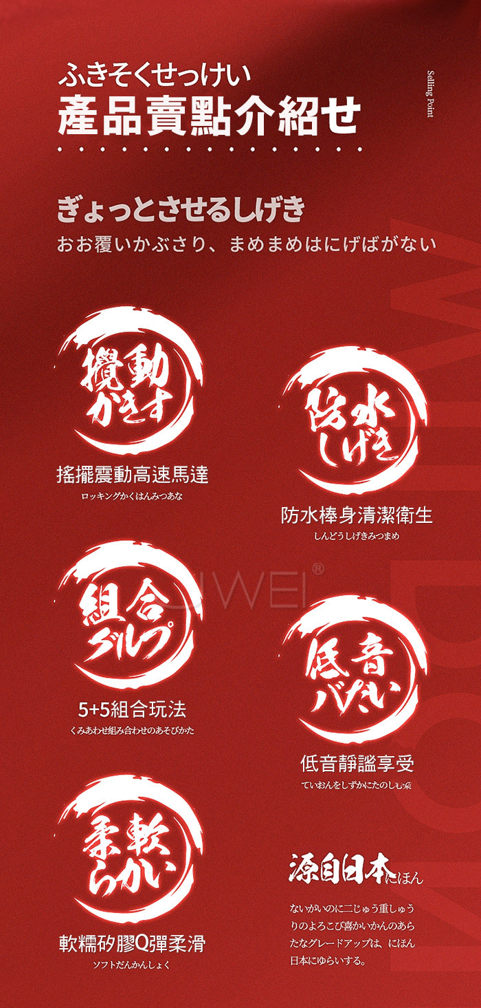 日本原裝進口WILDONE .東瀛白龍 5+5搖擺震動棒 -漣漪