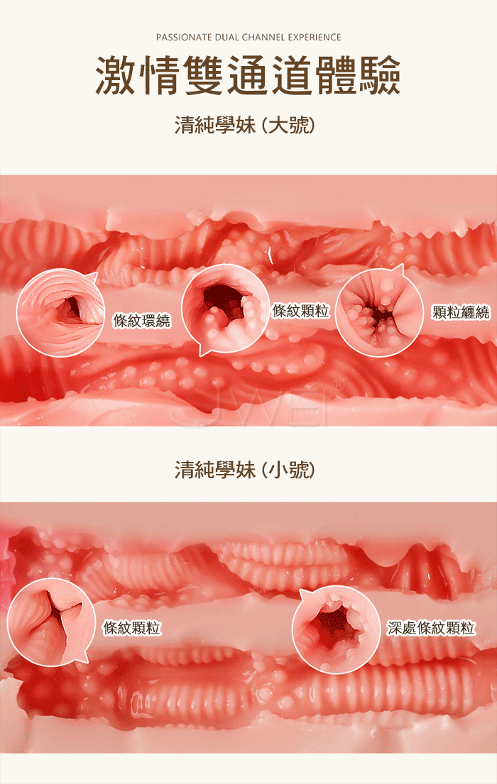 未曾體會過的體驗,仿真倒模,觸摸她的肌膚,她的嫩滑、柔軟,記憶中的美好;三層軟心工藝,她的柔 軟肉眼可見;仿真通道,私處溫潤包裹、肛門緊緻擠壓,激情雙交,肉感厚實,飽滿厚重柔軟隨你揉捏!