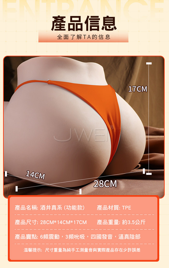 酒井真系.智能3頻夾吸吮+6段震動+四國語音呻吟 逼真膚感功能型美臀【吮吸,震動,發音,單通道】