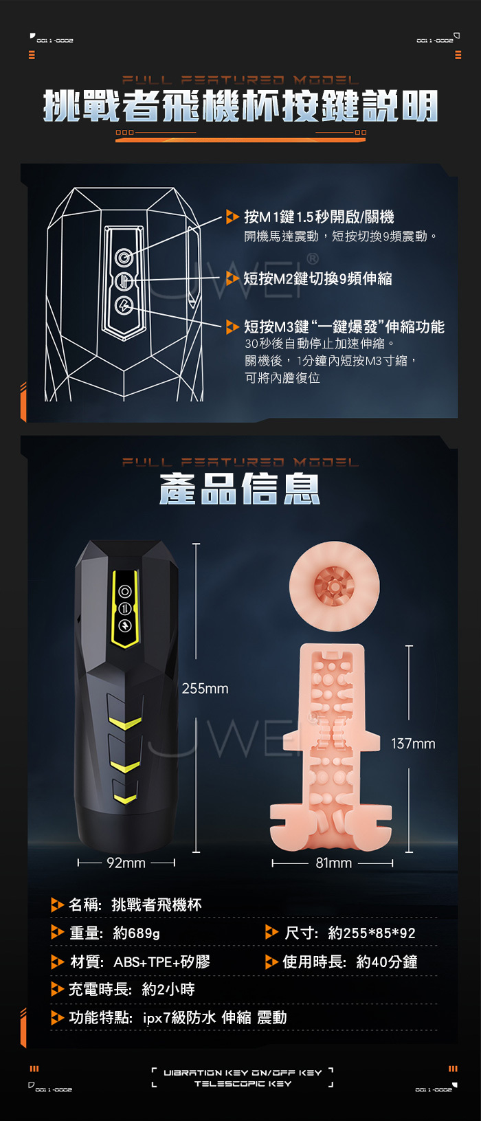 挑戰者.9頻強震10頻伸縮 IPX7防水電動飛機杯