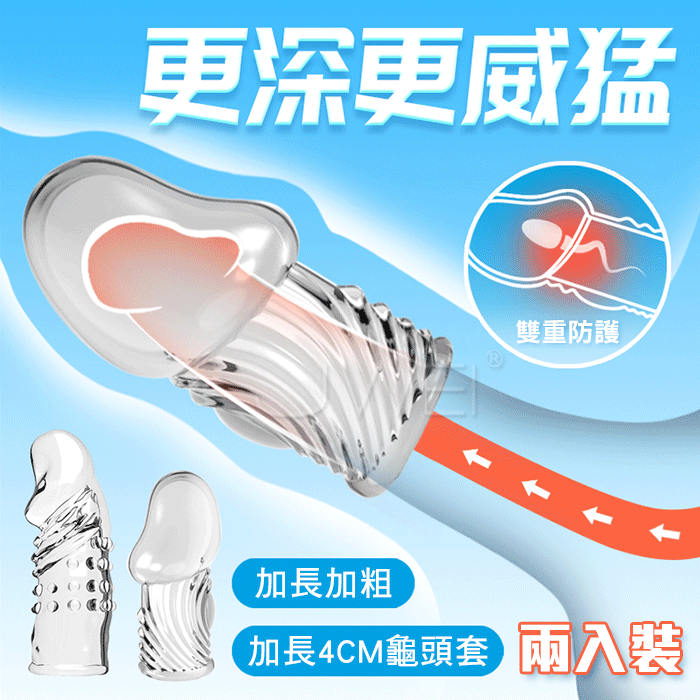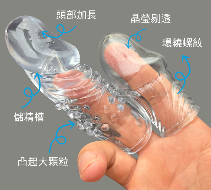 取悅.龜頭套環加長套 顆粒刺激/降敏緩射 【透明款】二入組