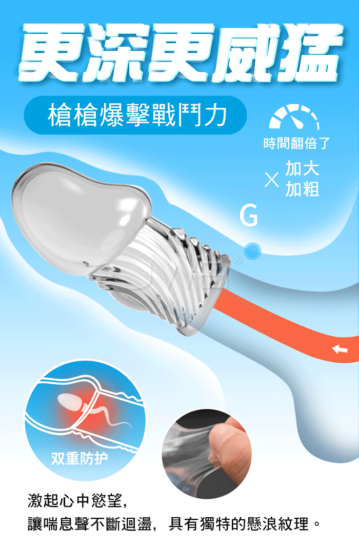 顆粒、加長、加強﹐大顆粒環繞刺激﹐立體式緊密吸包裹武裝。
