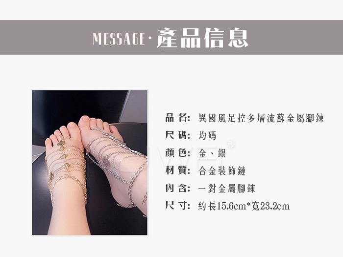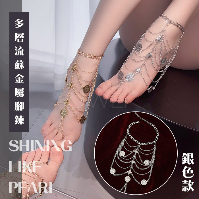 異國風情.足控多層流蘇金屬腳鍊-銀【一對金屬腳鍊】