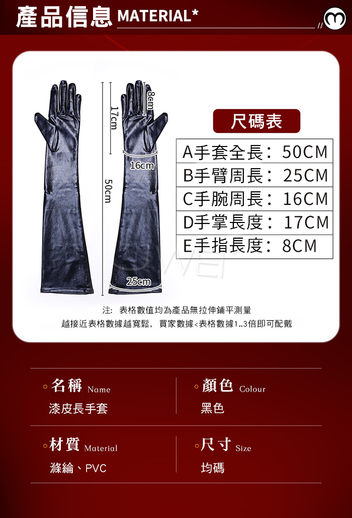 光澤漆皮.狂野魅惑時尚絲滑光澤漆皮長手套 (黑色)