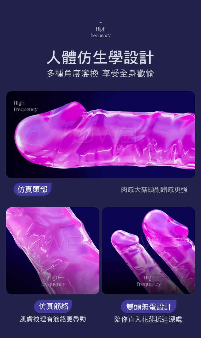 筆直的仿真造型,兩端各有一個"龍頭",器具上突起的筋脈更增加的它的逼真與力度.