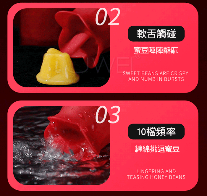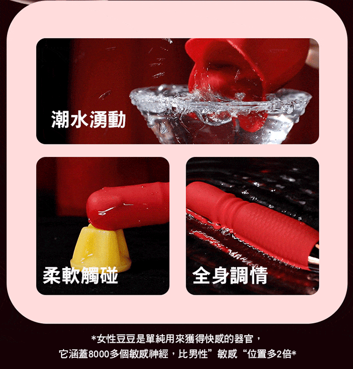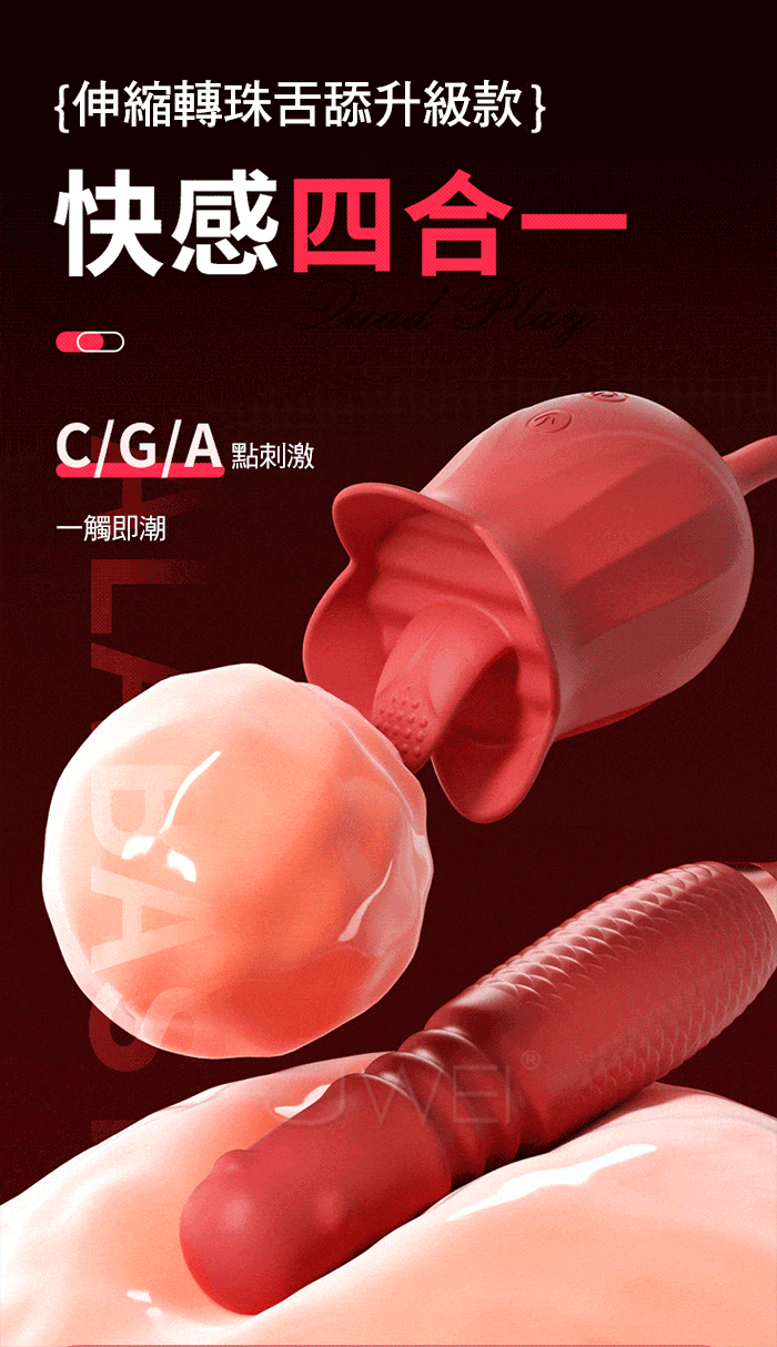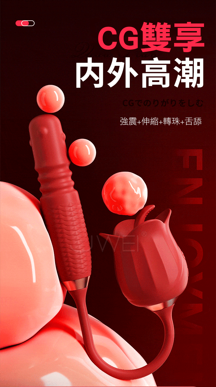 花蕾伸縮轉珠舌舔升級款,CG雙享內外高潮,外:聲波舌舔、蜜豆挑逗,內:高頻 強震、蜜道高潮;轉珠按摩,多點觸碰,360度來回按摩,雙排滾珠刺激,循環 磨撩快感翻倍;伸縮衝擊,長距伸縮 8mm挺進,直擊深處,驚艷的衝撞力;智 控馬達,震感升級,10頻花式舌舔,穩定強勁,低噪輕音,高頻舌舔;智慧晶片 ,10頻動感強震,強力震動,長久續航,快感爆發,百種玩法隨心組合!!