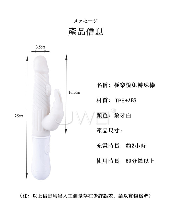 極樂悅兔.14段變頻旋轉滾珠USB充電震動按摩棒
