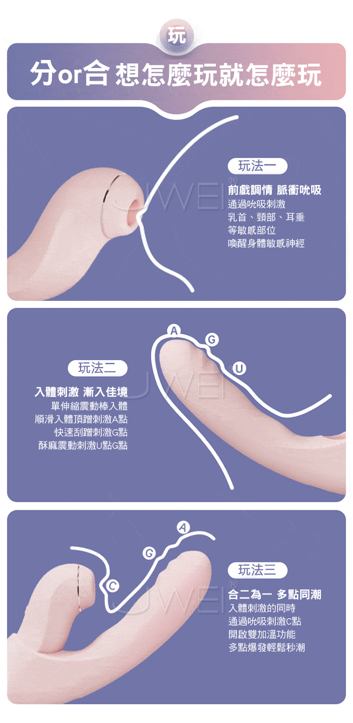司沃康. 分欣 分離式2合1G點電動按摩棒【伸縮+吸吮+震動+加溫+充電】