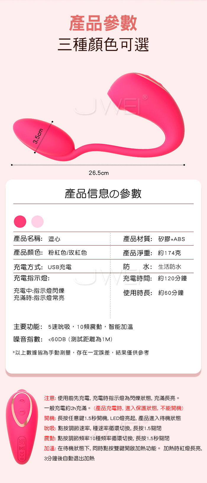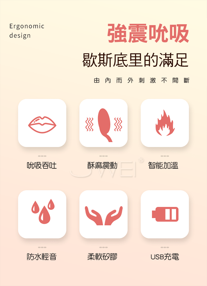 ■功能:5速吮吸,10頻震動,智能加溫