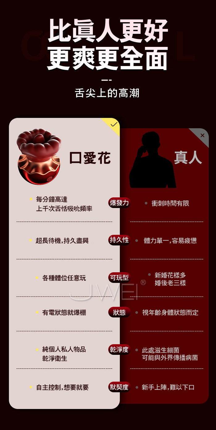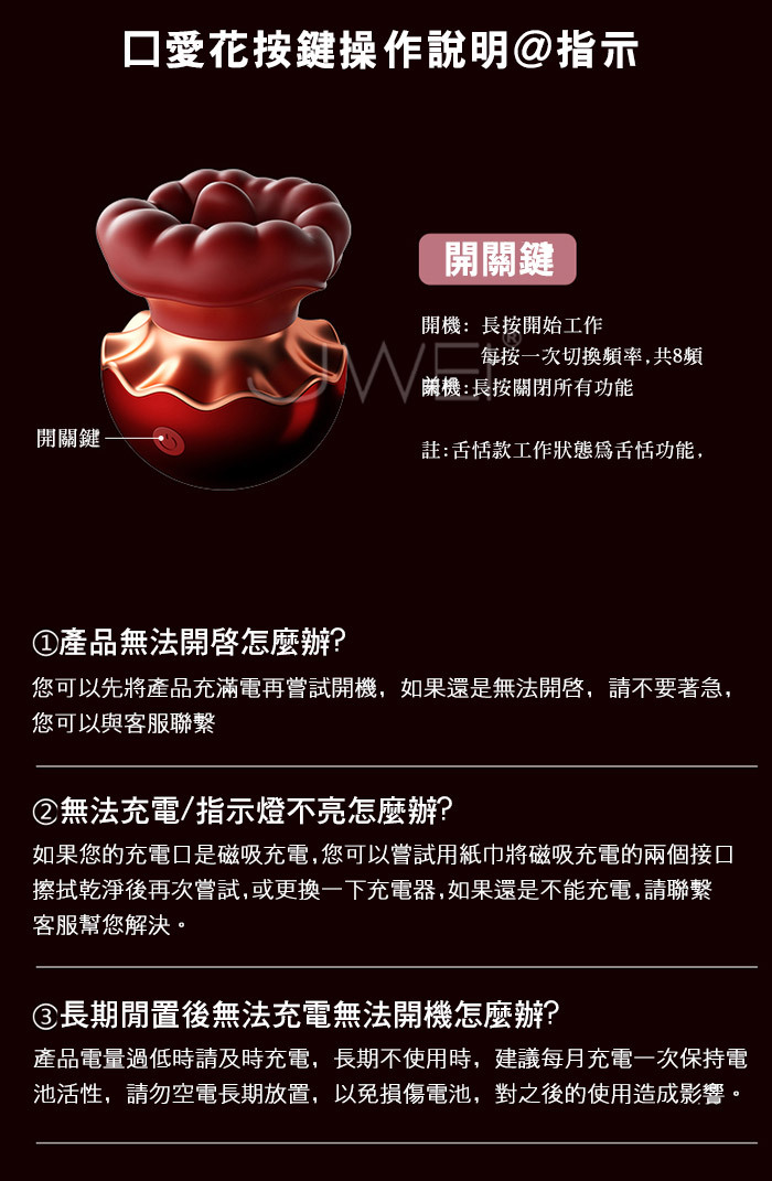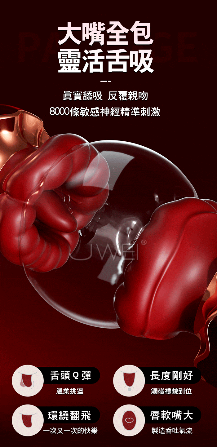口愛花.8段變頻 模擬真人嘴巴舌舔器 (舌舔款-红唇)