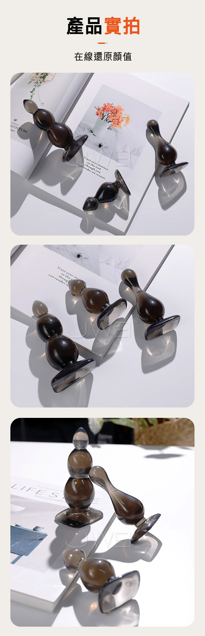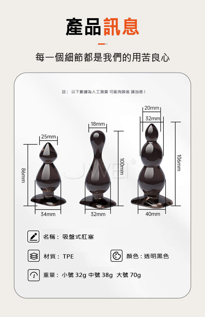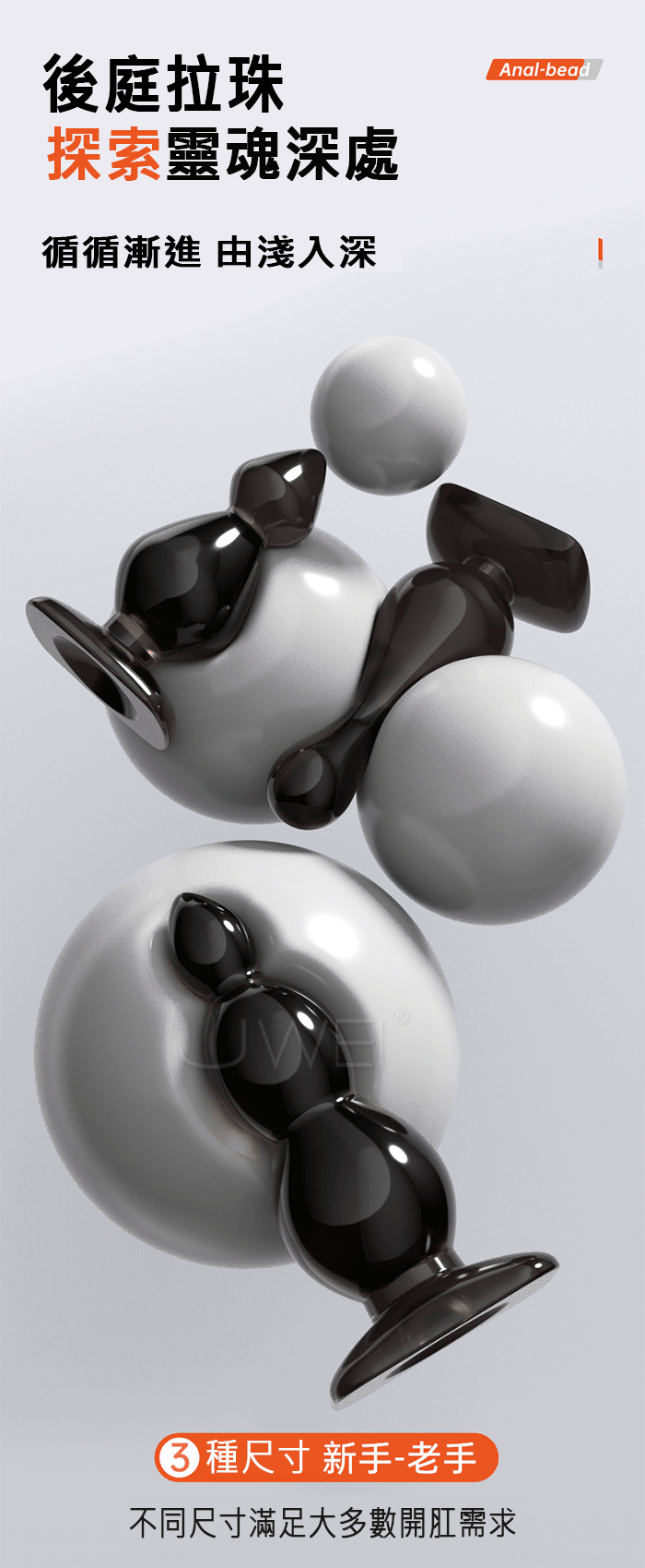 SEXLOVE.高彈透黑圓潤吸盤式拉珠肛塞 後庭擴肛-中號