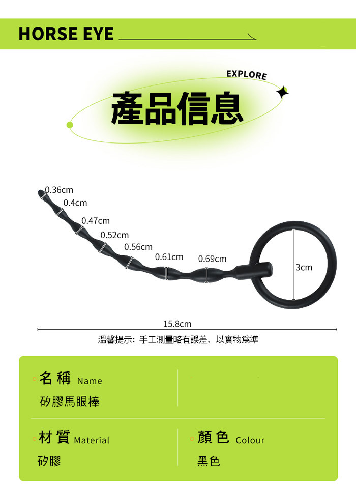 馬眼探索.矽膠馬眼棒 10cm可入長度 整根深入 直達膀胱 (拉環款)