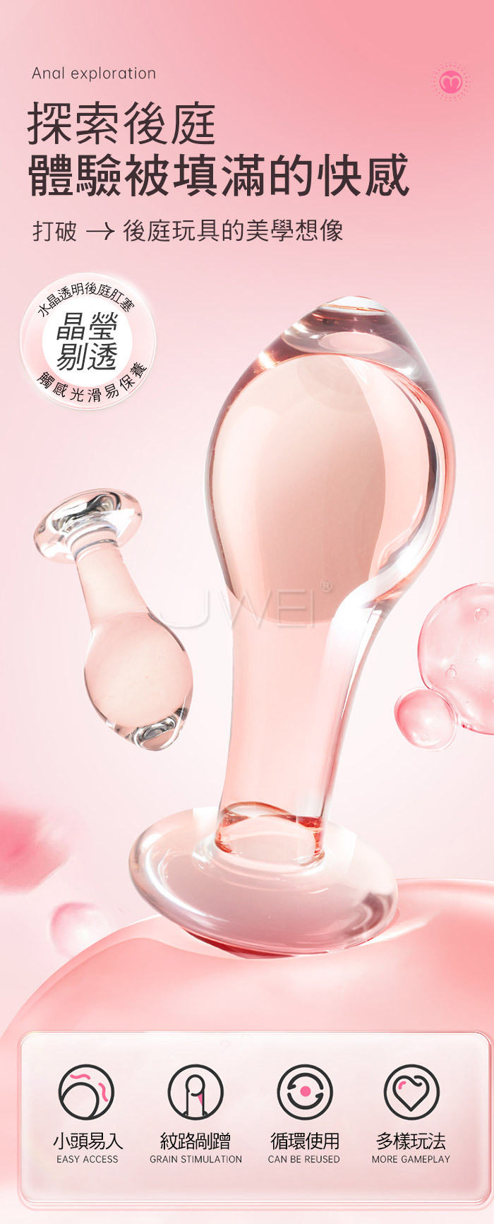 水晶.圓頭後庭開發玻璃肛塞-小號