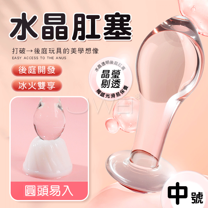 水晶.圓頭後庭開發玻璃肛塞-中號