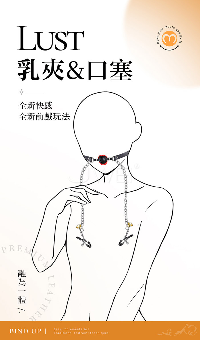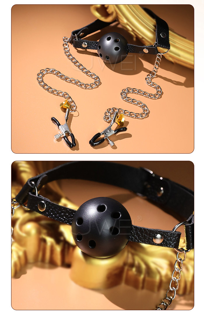 SM閨房情趣.口塞+不銹鋼金屬鏈乳夾 双峰刺激