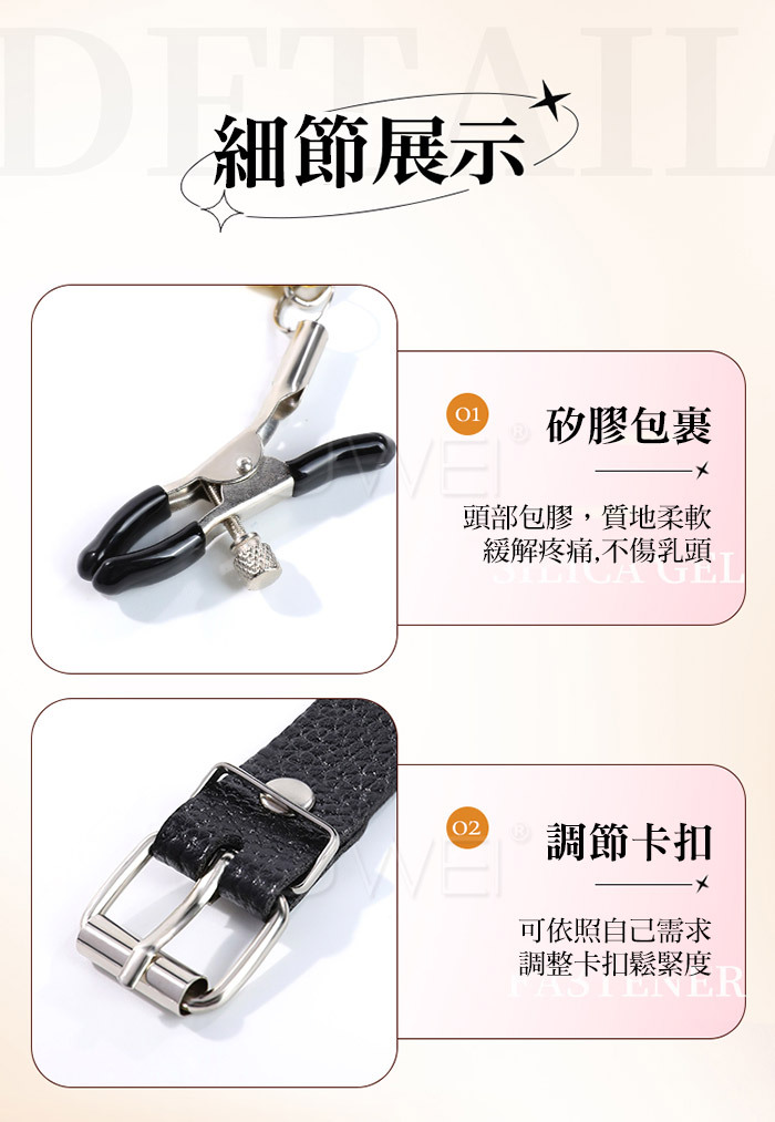 乳峰上的敏感刺激,引得絲絲暖流從心中湧出,感受疼痛的同時享受別樣不同的快感;多 樣玩法,牽引前戲扮演;直擊要點,疼痛波動漣漪,清脆的鈴鐺聲,隨著身軀的顫動傳來 聲聲悅耳輕吟,撩動春心蕩漾~