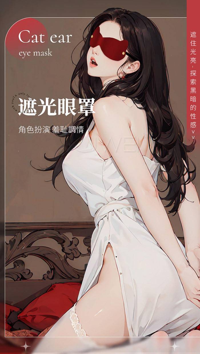 SM.夫妻調情貓耳眼罩 互動式玩具-酒紅色