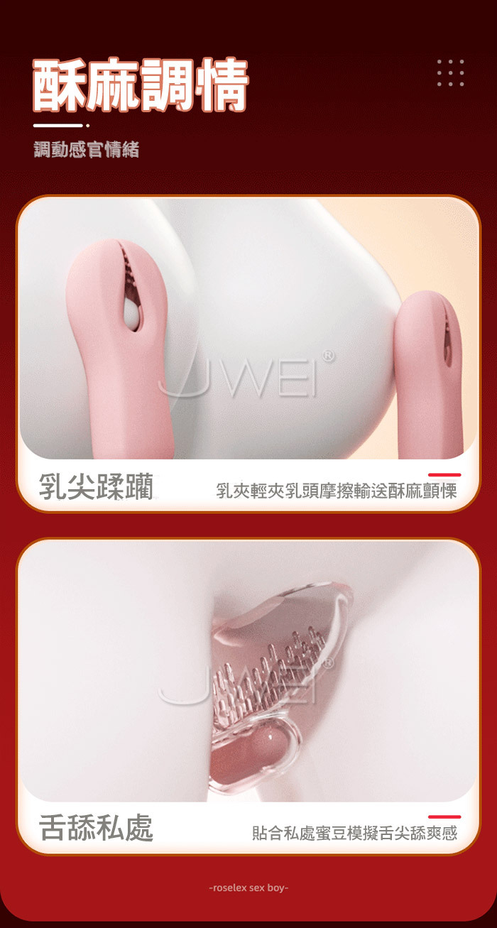 ROSELEX. 激震夾乳+爽撩弄陰18段強勁按摩器(遙控充電款)