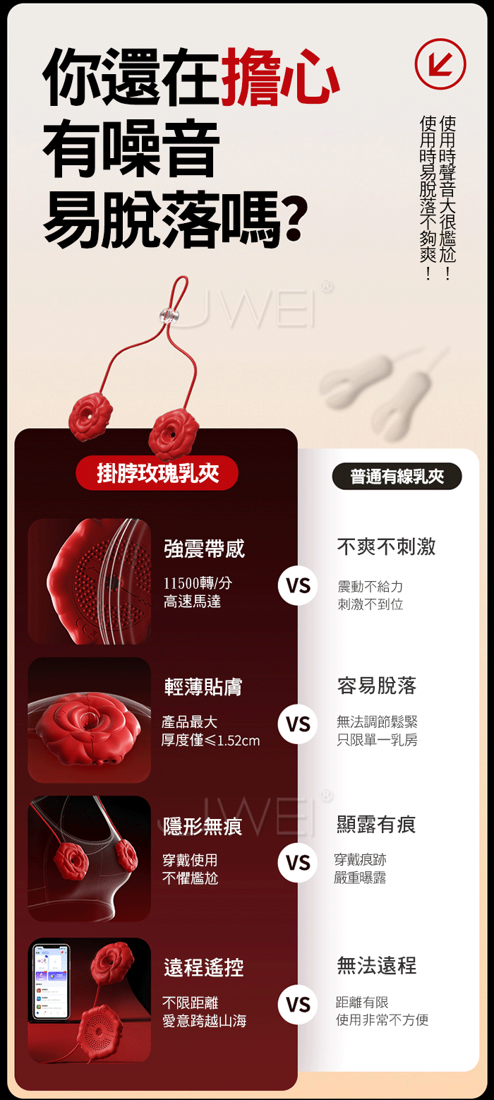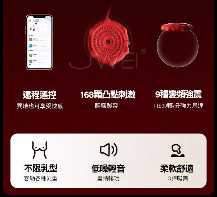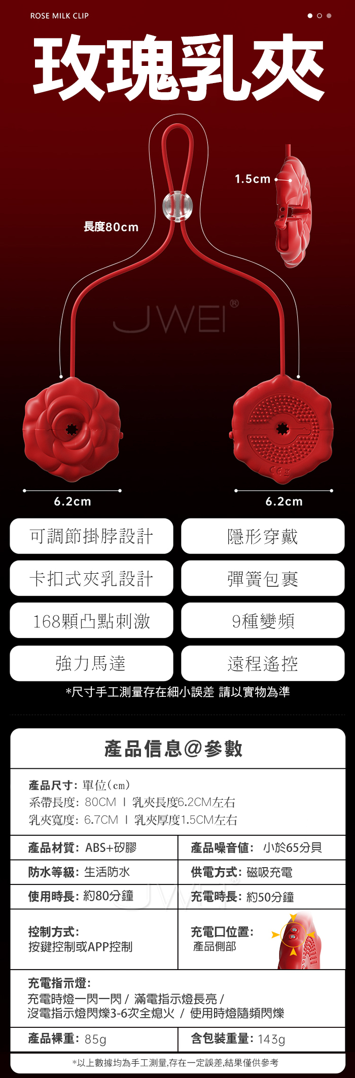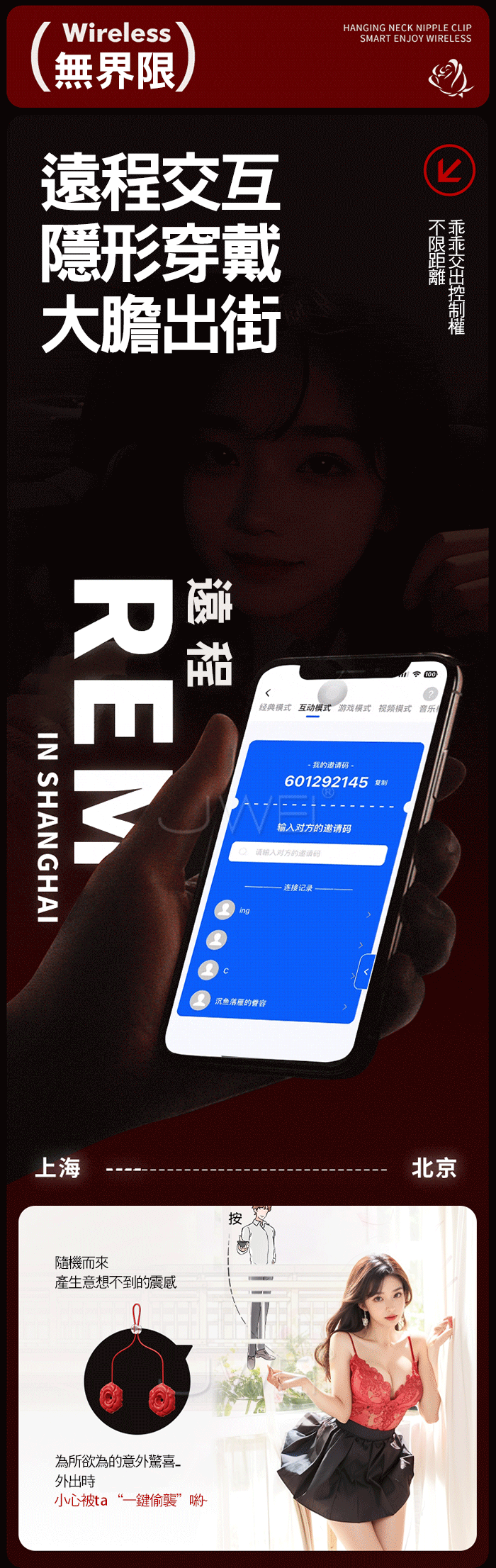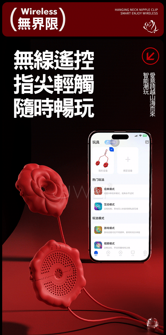 智控玫瑰.乳房挑逗按摩乳夾 9頻強震小程序遠程控制