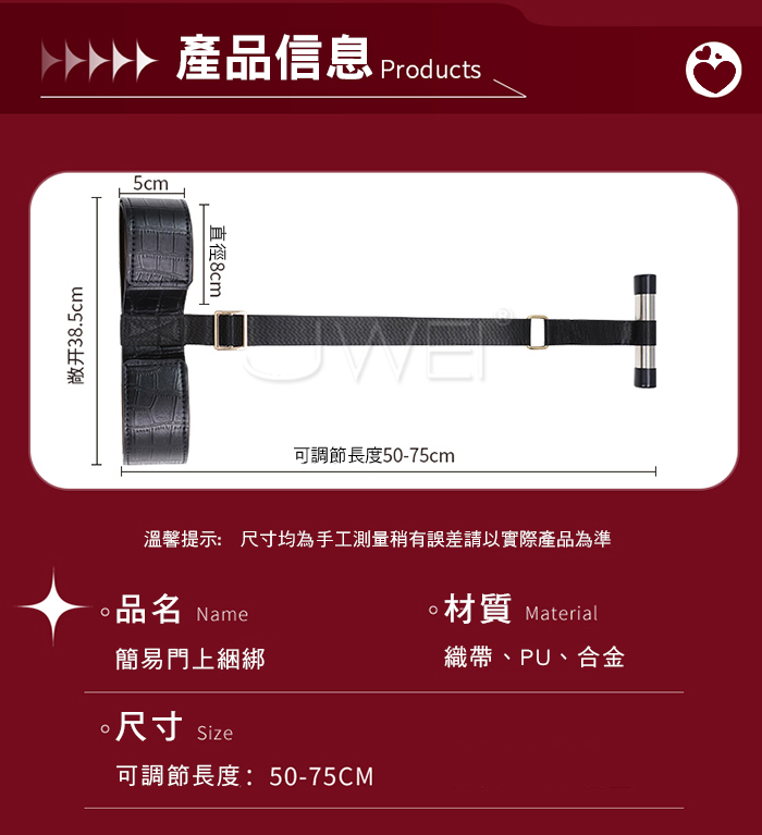 SM閨房情趣.簡易門後捆綁 男女通用束縛調教 (黑色)