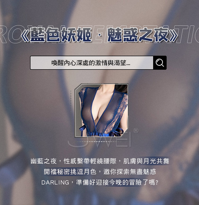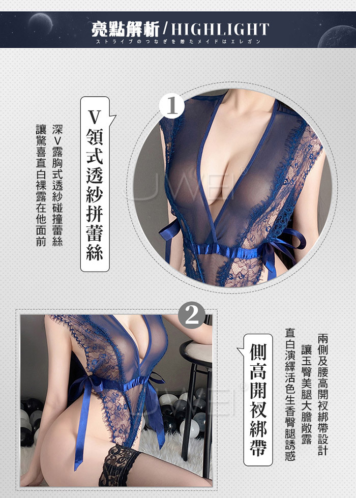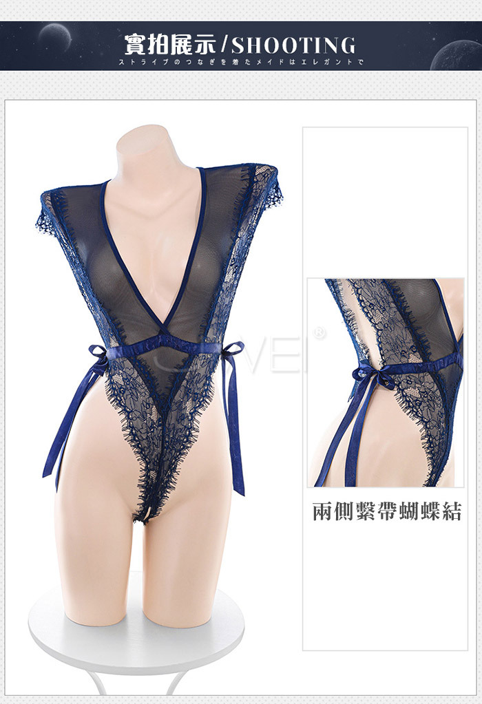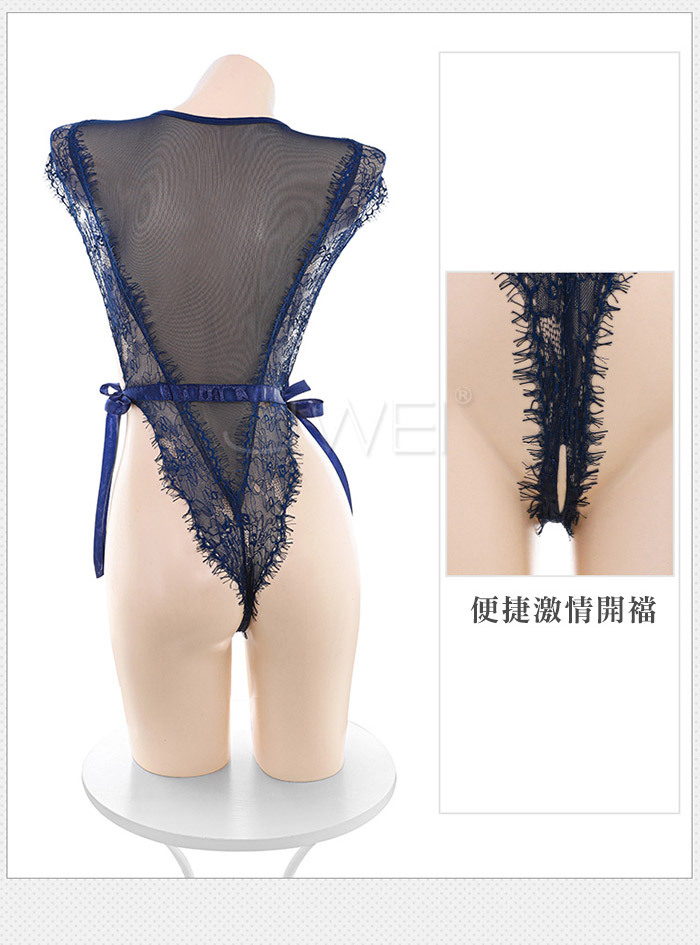幽藍謐夜.深V裸臀綁帶開襠連身衣