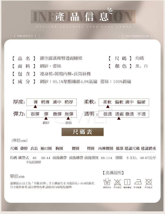 ■內容物:連身裙x1+開檔內褲x1+長筒絲襪x1