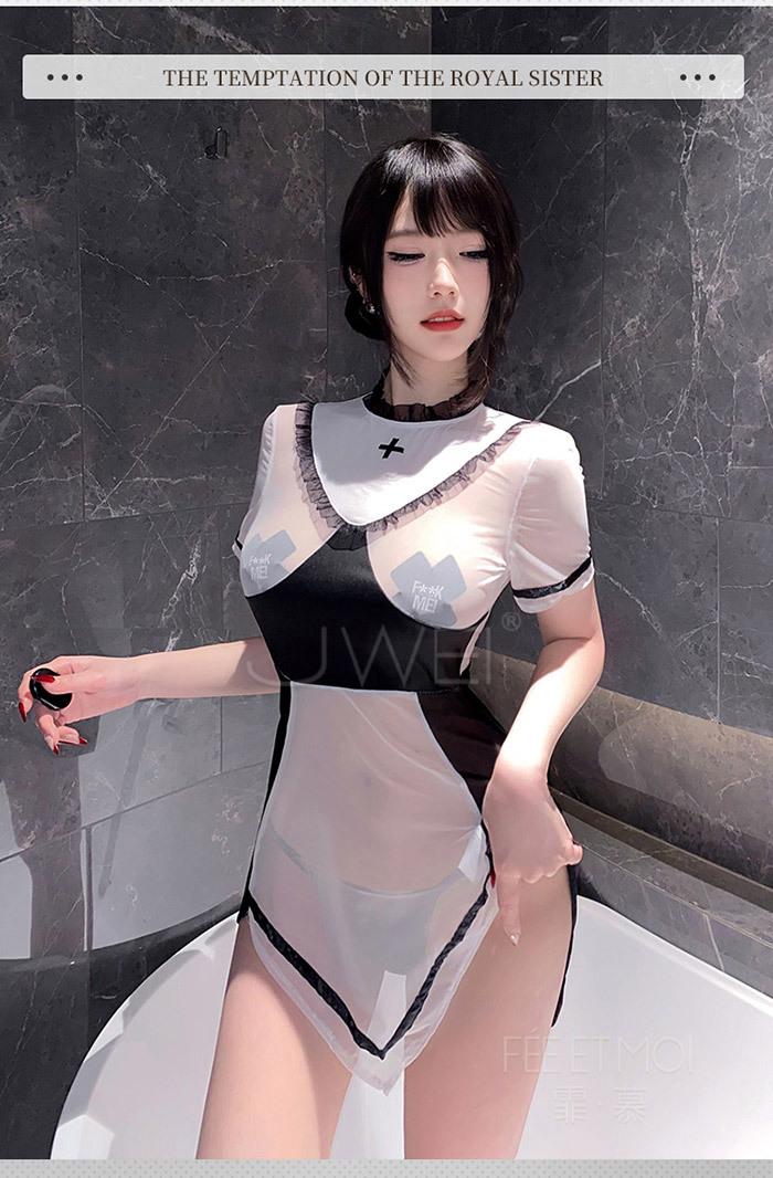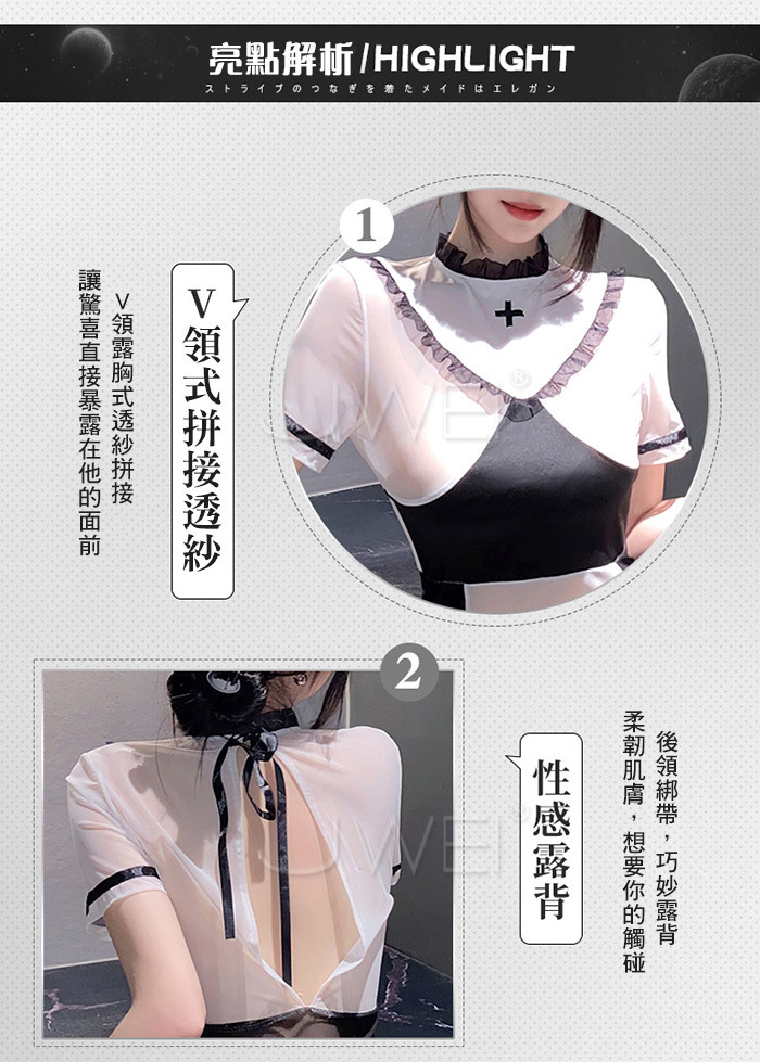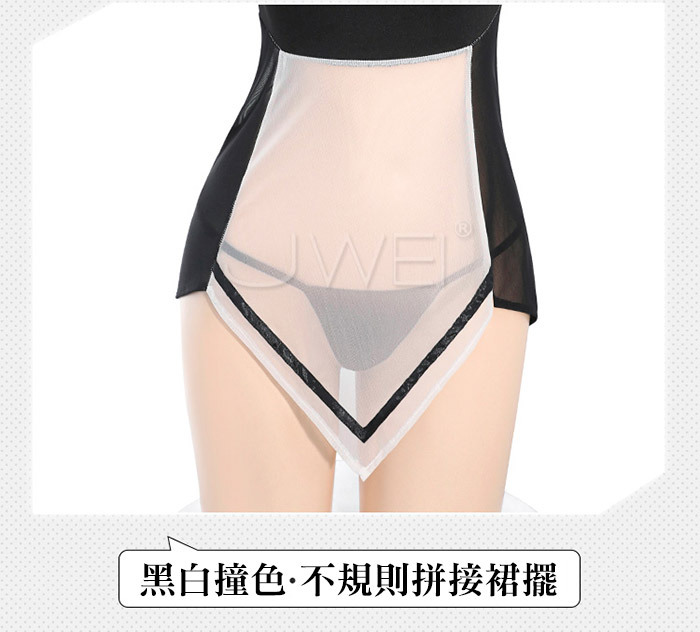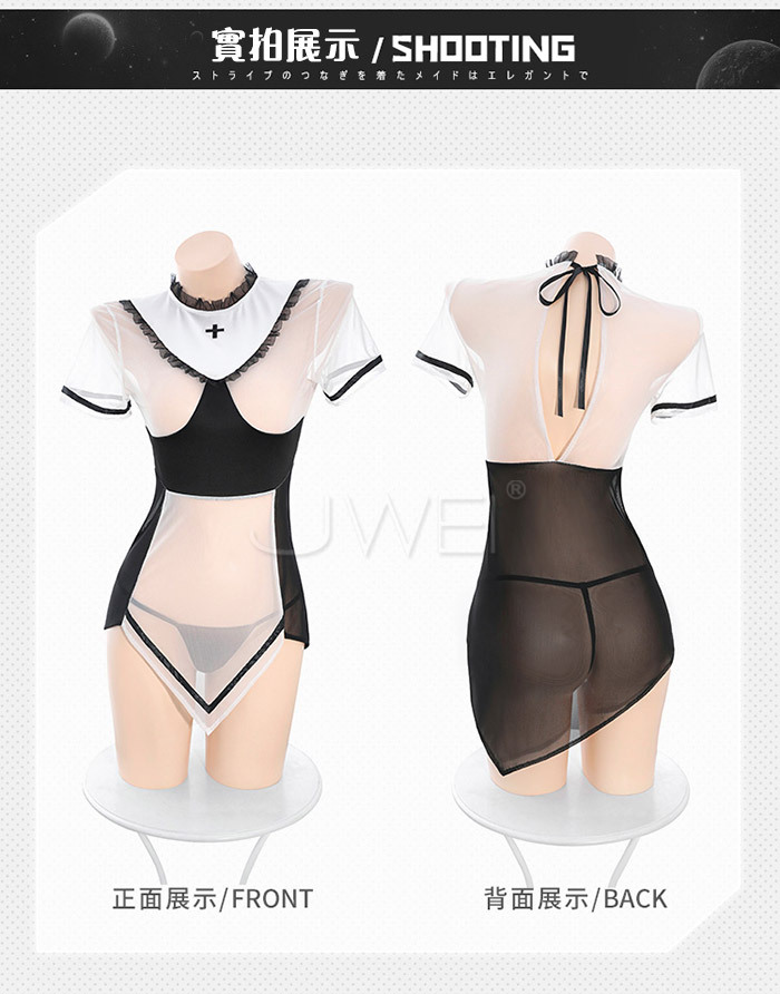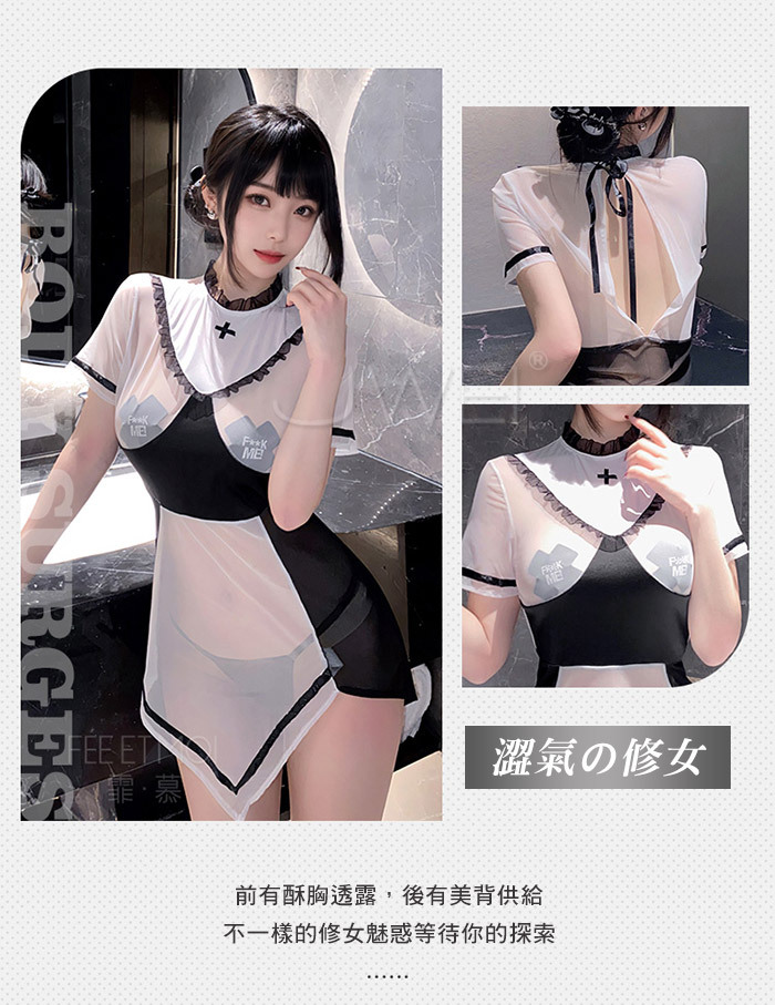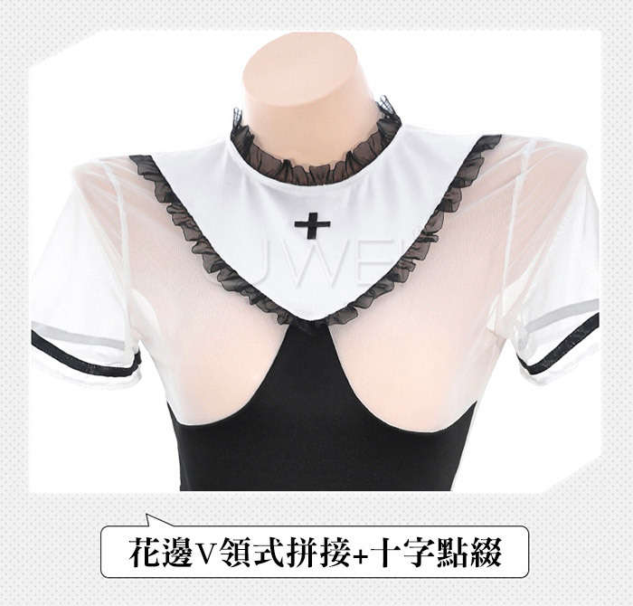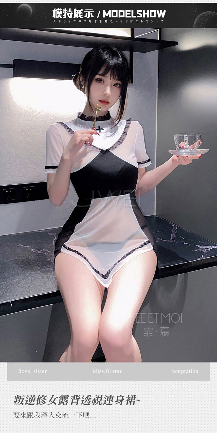叛逆修女.V領式拼接透紗性感露背透視裙
