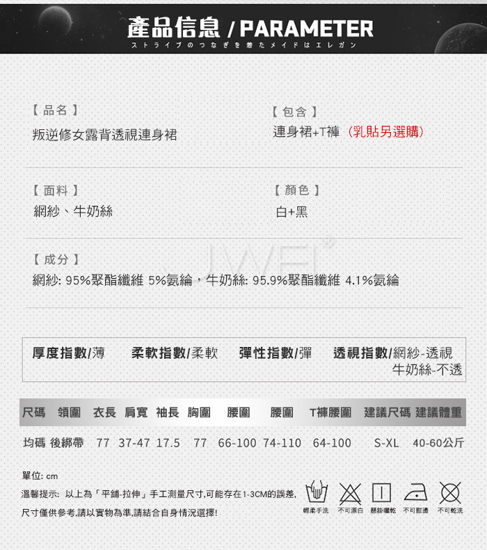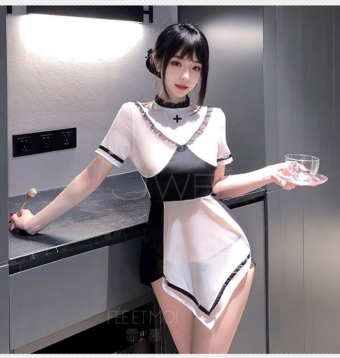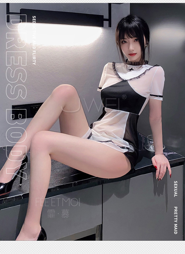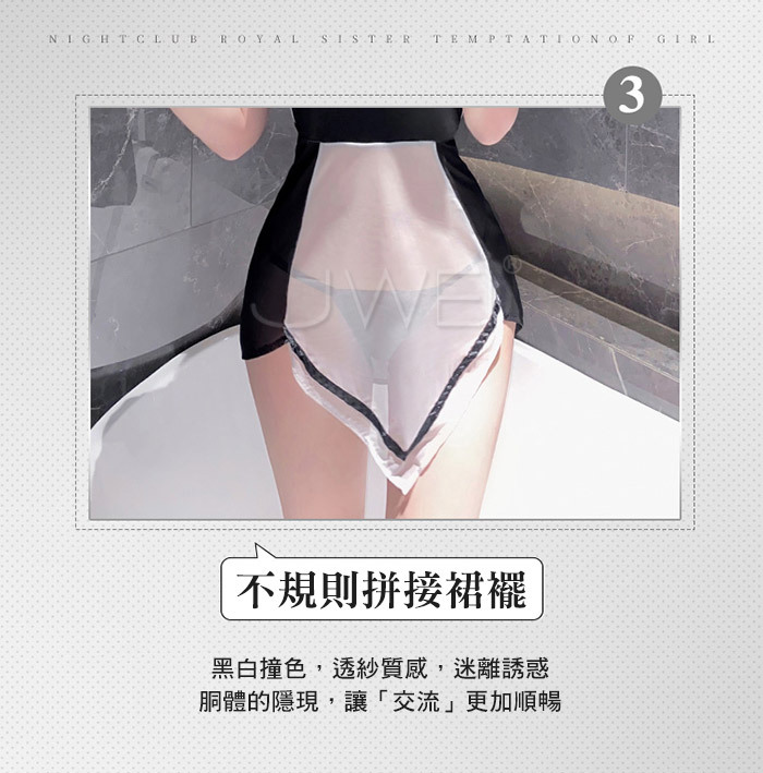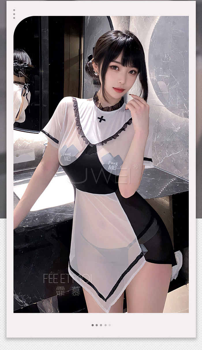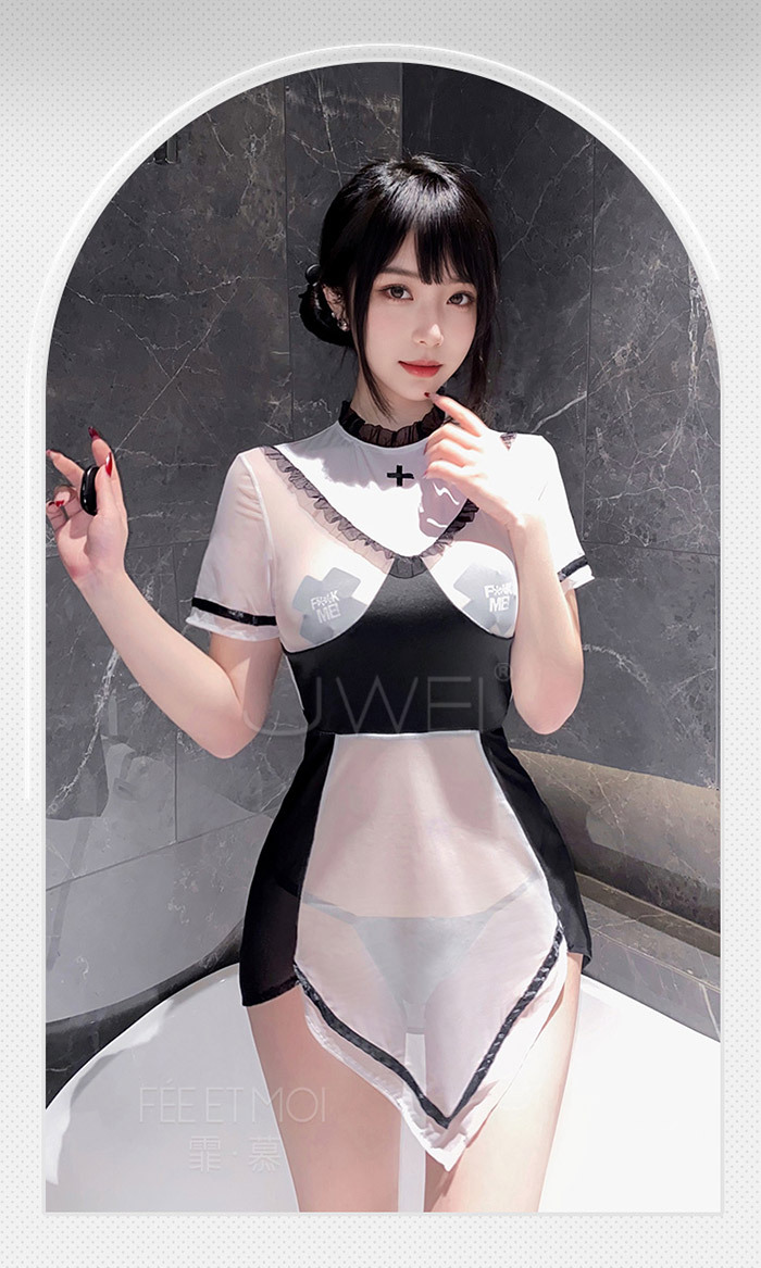 叛逆修女.V領式拼接透紗性感露背透視裙