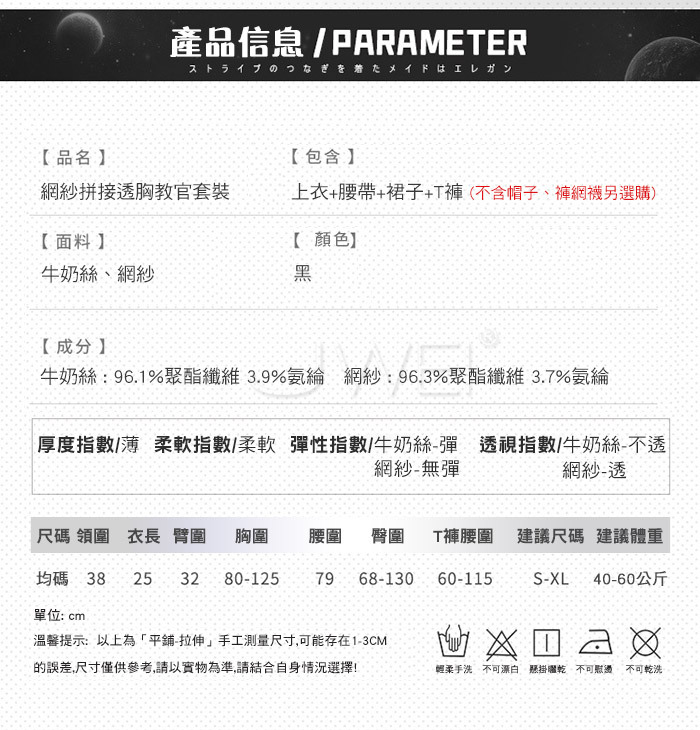 ■內容物: 上衣x1+腰帶x1+裙子x1+T褲x1