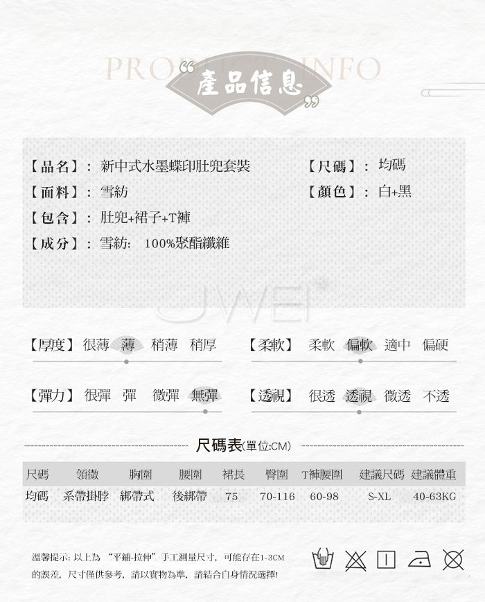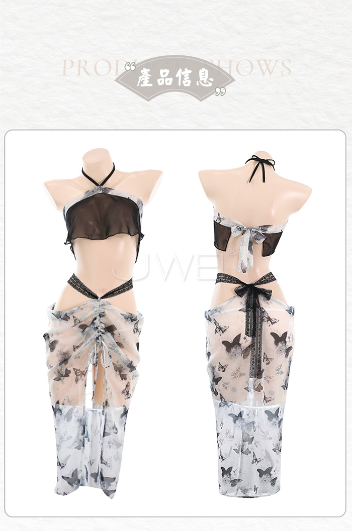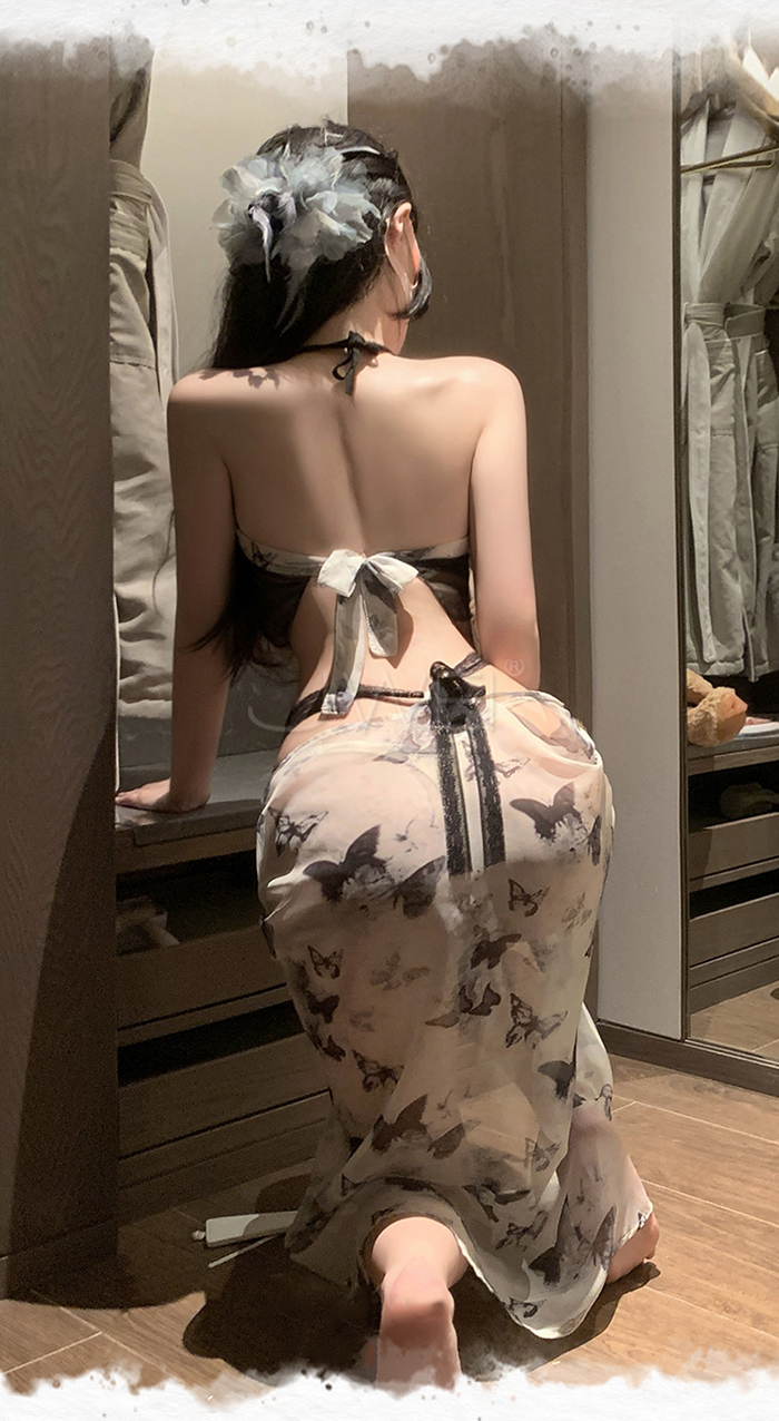 蝶韻風華.新中式水墨蝶印掛脖透視肚兜飄逸裙擺套裝【肚兜+裙子+T褲】