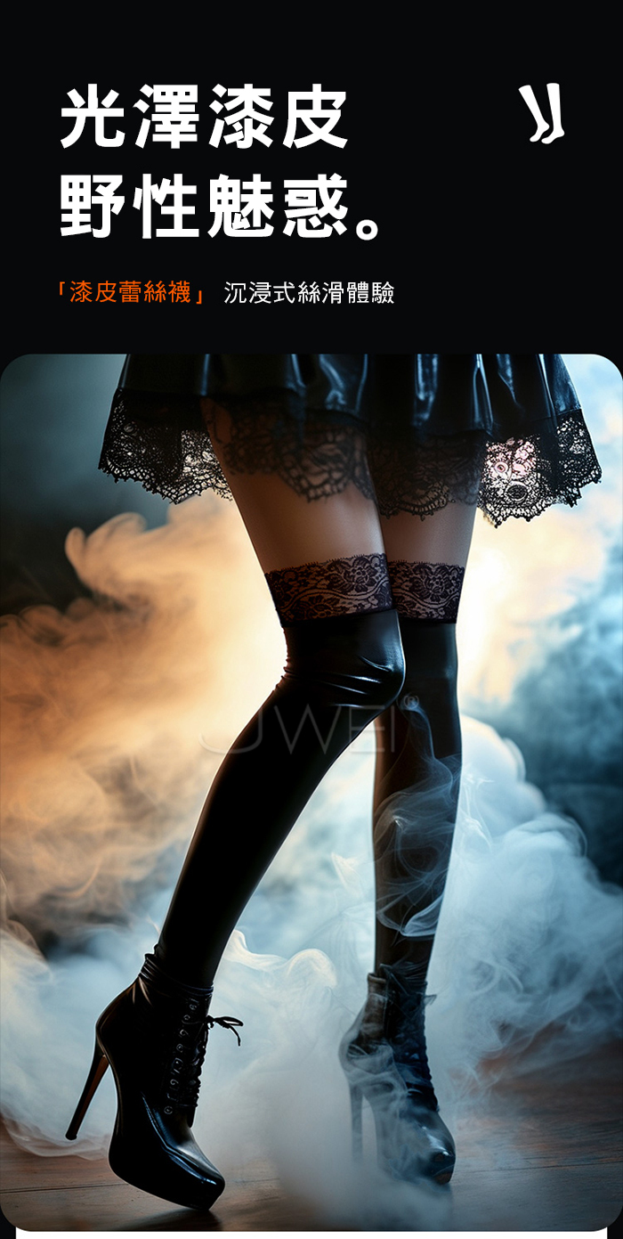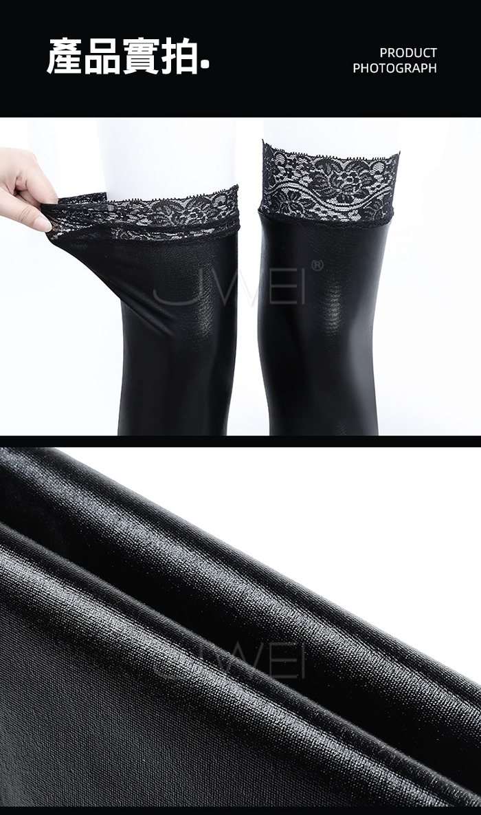 光澤漆皮.狂野魅惑時尚絲滑光澤漆皮蕾絲長筒襪 (蕾絲款)