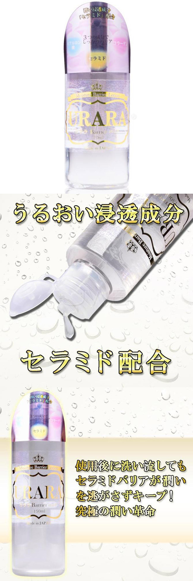 潤い浸透成分【セラミド】配合ローション。 ヒアルロン酸とコラーゲン配合で肌にしっとり馴染む高粘度ジェルローション。 面倒な糸引きを抑えたジェルタイプだからスマートな使用感。 しっかりとゼロ摩擦・高潤滑を実現! 使用後に洗い流してもセラミドバリアが潤いを逃がさずキープ! 究極の潤い革命ローション登場! 内容量:70ml