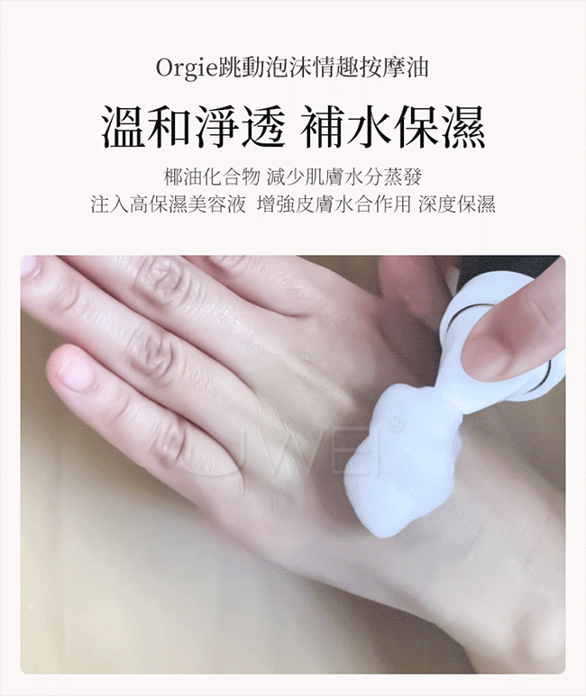 一支有“跳動感”的按摩油,喚醒肌膚活力,讓泡泡在你肌膚上“爆炸“ 情趣按摩油挑逗TA的慾望,氣泡爆裂的“滋滋聲”加上跳動的快感,聽覺 和觸覺的雙重刺激,喚醒TA的激情慾望;冰涼快感刺激喚醒激情,剛噴出來 的時候,能在肌膚上產生非常強烈的冰涼快感,就像在上面放了一塊冰塊 刺激,能快速激活沈睡慾望;柔潤慕斯泡泡質地享受SAP級情趣按摩體驗!