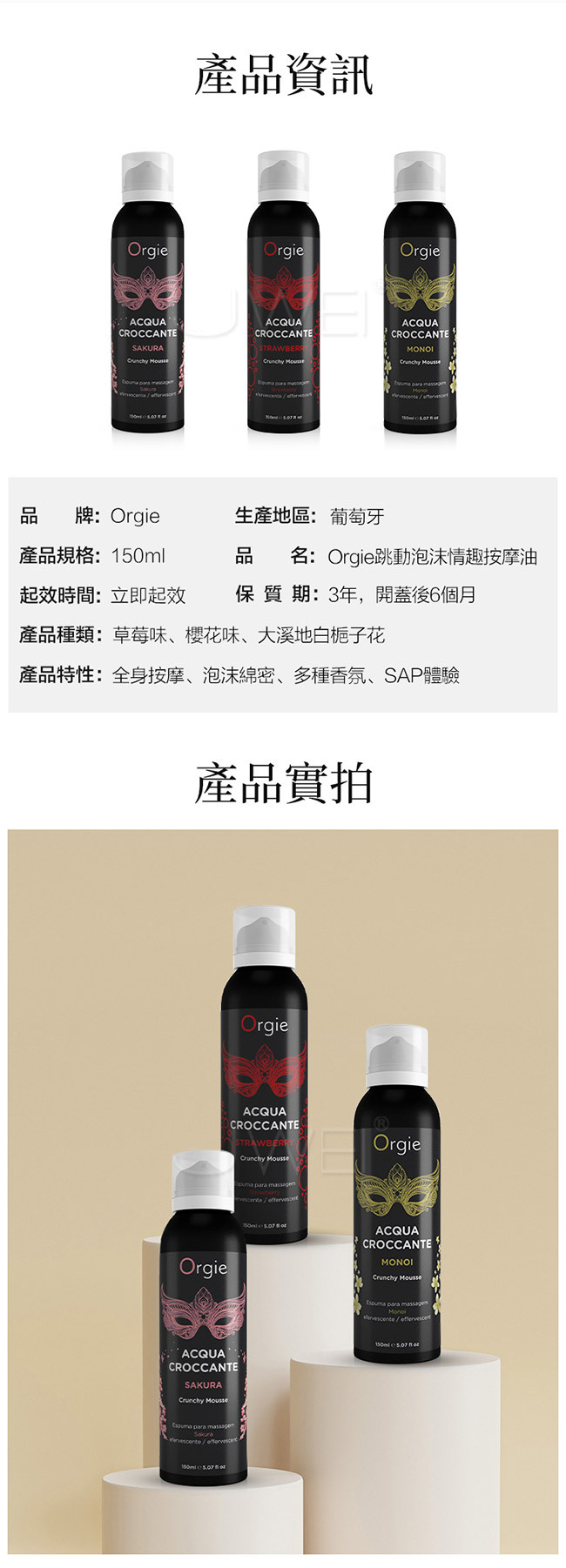 葡萄牙Orgie.ACQUA - Sakura淡淡櫻花慕斯 跳動泡沫情趣按摩油-150ml