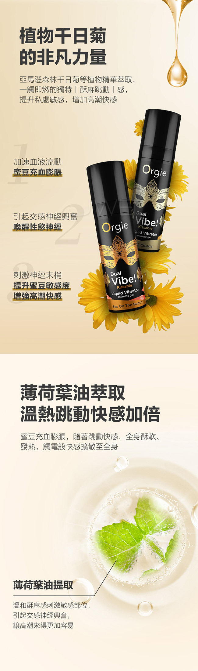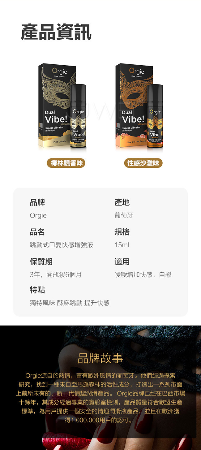 經典雞尾酒風味-椰林飄香味,快感增強液,酥麻跳動,口交可舔舐 ,提升敏感激慾望口交調情,原裝進口不含酒精,植物成分,安心口 愛;刺激感受,酥麻跳動感,喚醒蜜豆神經,讓其有膨脹感增加敏感 度,為噯噯增加快感;口味清爽鳳梨微酸檸檬和香甜椰奶的混合,清 爽夏日風情;適合蜜豆敏感度較低、想要提升快感人群!