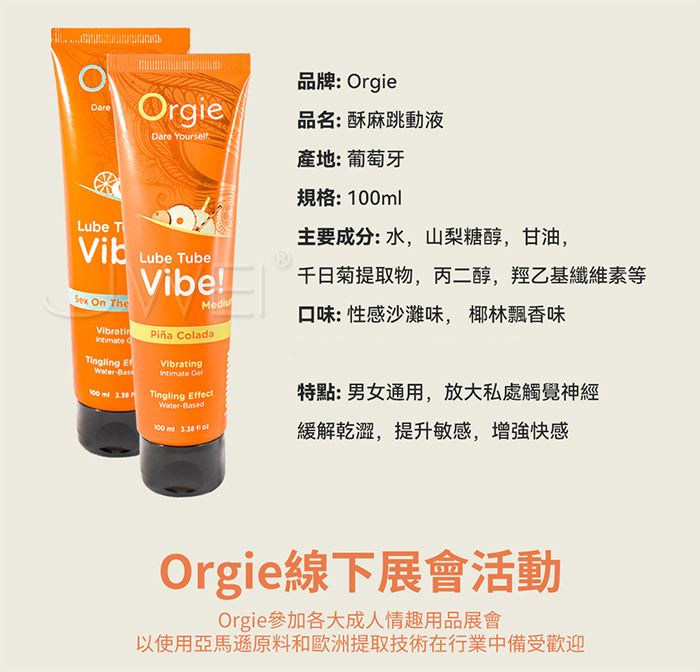葡萄牙Orgie.Lube Tube Vibe 酥麻跳動快感液+獨特尾酒風味~椰林飄香 可口交+水性潤滑 100ml