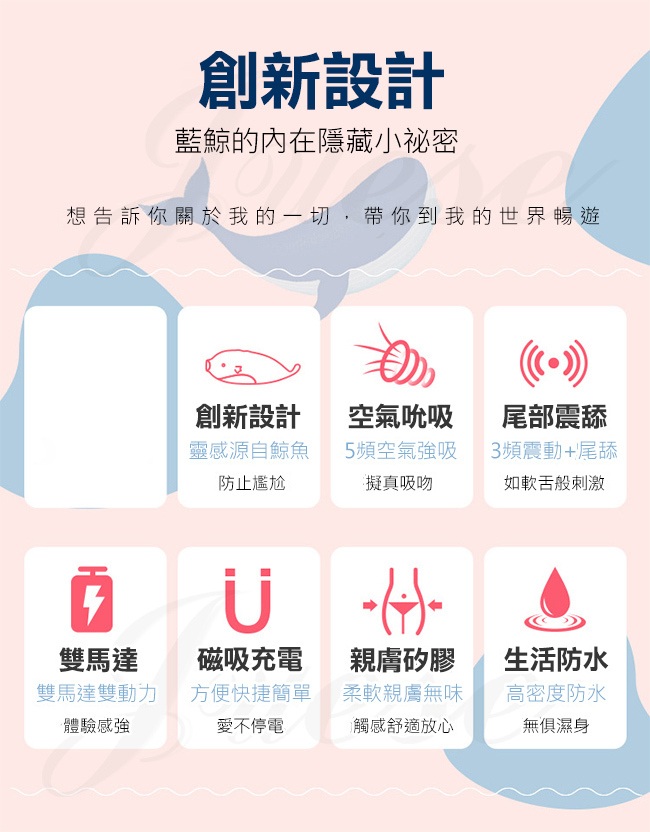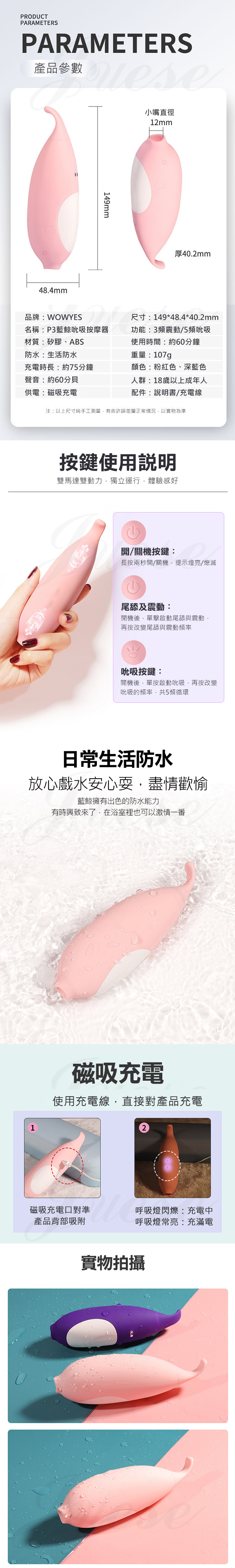 P3藍鯨 5x3吸吮舌舔雙馬達充電按摩器-粉-標準版