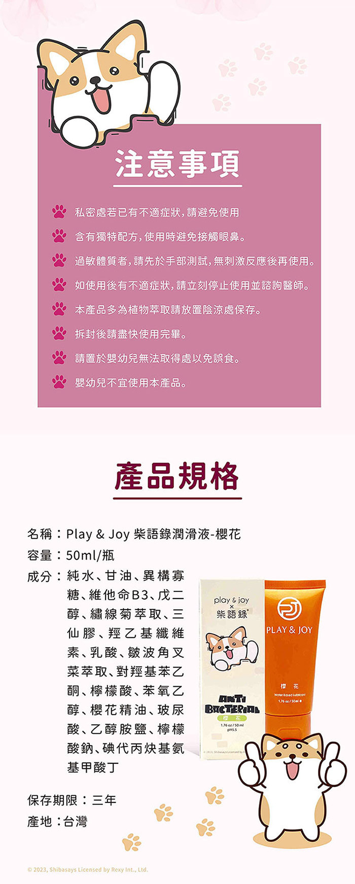 Play&Joy 柴語錄.櫻花抑菌型潤滑液 50ml