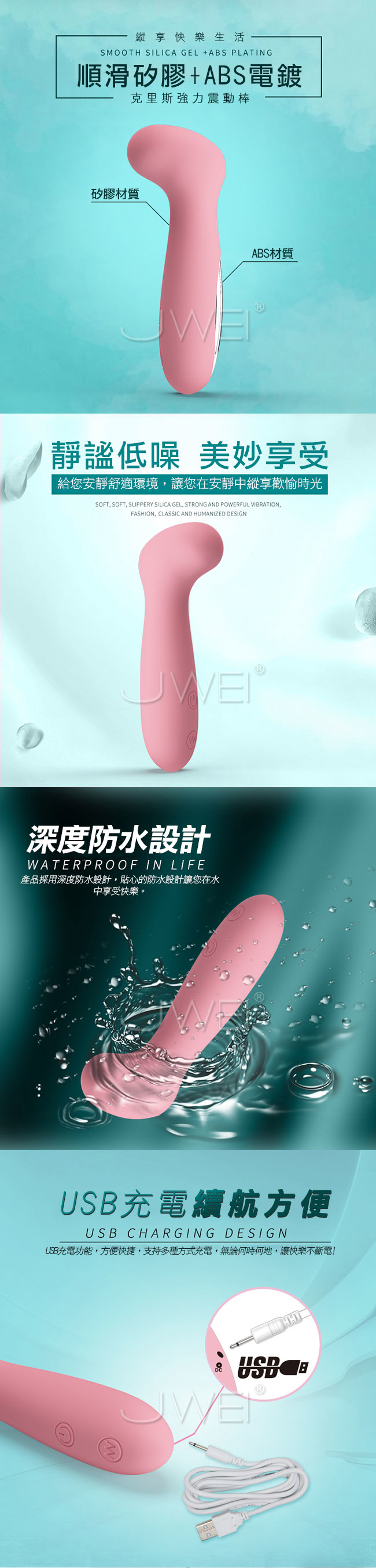 克里斯強力震動棒給您不同的的快樂享受,擁有30段強力震動帶給前所未有的美妙享受。由於產品造型小巧,便於攜帶結合人體工學設計,讓您出門在外隨時都能享受愛愛的美好。採用順滑矽膠材質給您溫柔舒適的觸感!採用防水設計,方便清洗讓您在浴室裡也能使用享魚水之歡唷~靜謐低噪設計讓您在安靜環境內盡享愛的私密空間!USB充電續航方便,支持多種方式充電無論何時何地讓快樂不斷電!